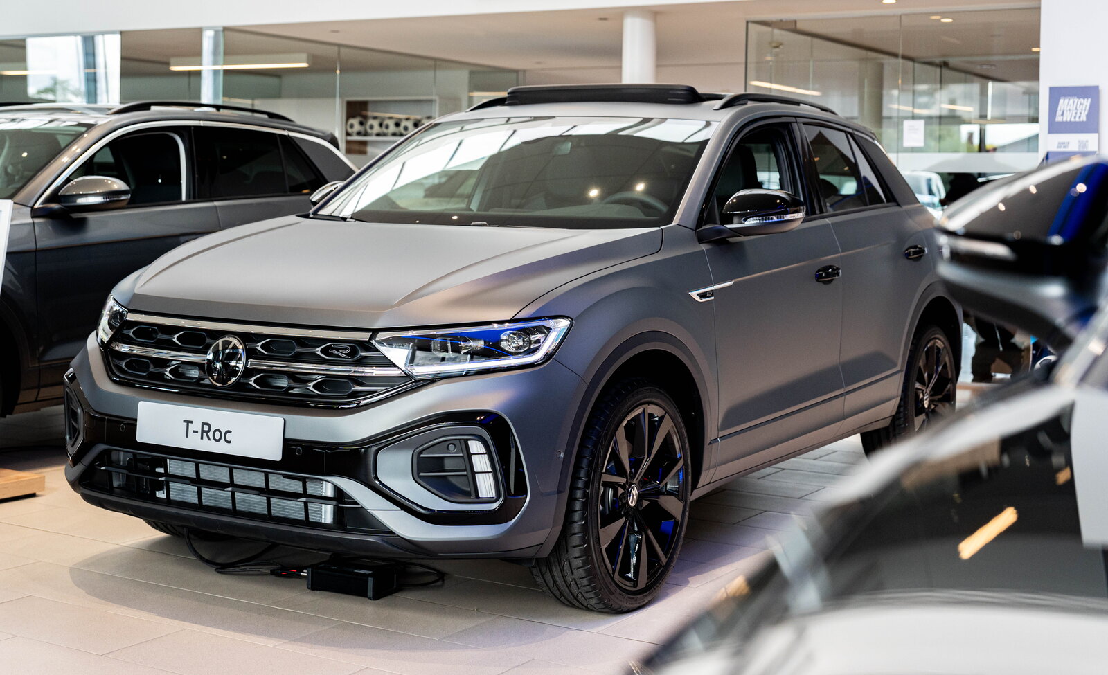 Ontdek de Volkswagen T-Roc R-line Ultimate Black in zijn ultieme vormen. De T-Roc R levert pure performance met 150pk, een sprint van 0-100 km/u in slechts 4,9 seconden. Voor wie stijl en comfort verkiest, is er de T-Roc R-Line Ultimate Black: stijlvol uitgevoerd in Indium Grey mat, met een Soul-Flint Gray/Black interieur en een 7-traps DSG. Deze sportieve SUV combineert kracht, elegantie en premium afwerking en er is al een T-Roc beschikbaar vanaf 31.180,01 euro.